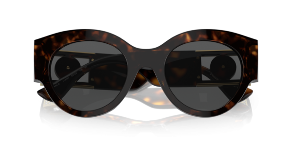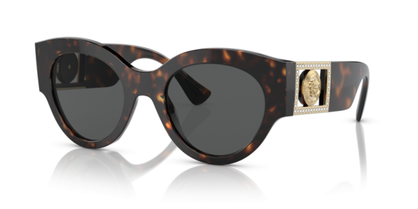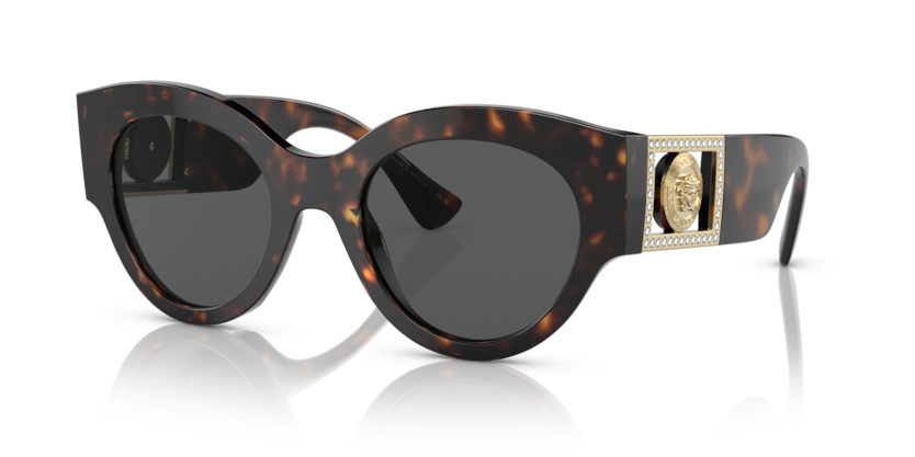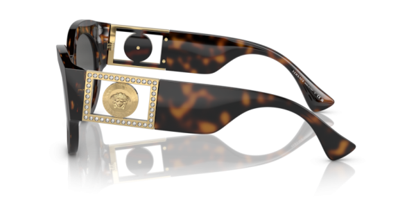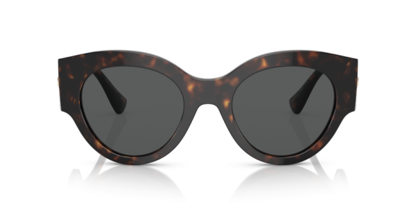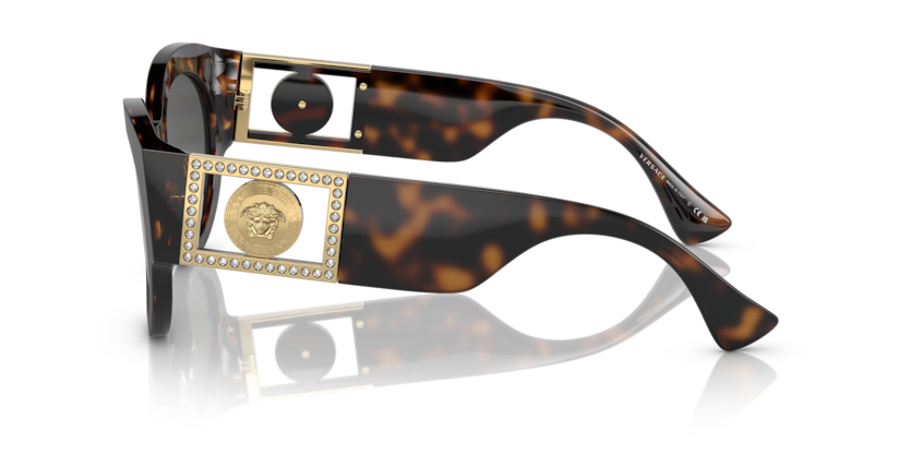 A herança moderna ganha um novo significado na coleção Bright Medusa da Versace. Detalhes brilhantes adornam os icônicos medalhões nas têmporas deste modelo. Com um Formato redondo artístico em acetato com um charme extragrande e Medalhão da Medusa nas hastes enriquecido por cristais brilhantes.